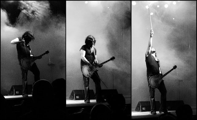 Then I got to see an act I never thought I would: The Tea Party who have reunited this summer for just 9 concerts, although it was mysteriously mentioned on stage "we're baaaaaack" I blushingly admit to having had a bit of a crush on Jeff Martin in highschool and I used Tea Party songs in my lyrical dance choreography. I've always loved their mixture of blues and eastern influence rock with unusual open tunings and strange instruments and there was no shortage of instruments in their live performance .. with Jeff and Stuart Chatwood the "bassist" playing between them a wide variety of guitars, stringed instruments and handrums plus keyboards, harmonium, and even a theramin which I've always wanted to see!